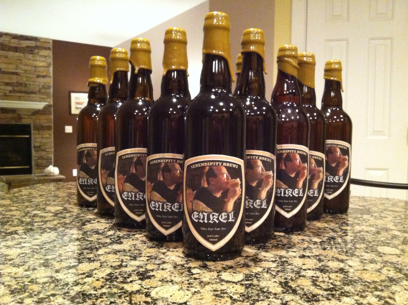 I call my version Enkel (single); it’s brewed with 100% Belgian pilsener malt to an OG of 1.052, then fermented with WLP550 (the Achouffe strain-not Trappist, but it’s what I had on hand) to about a 5.2% abv. Bottled two days ago, and the sample I drew was absolutely delicious: spicy, phenolic, with a bit of banana on the dry biscuity finish. Can’t wait until this one conditions and I can start drinking it!