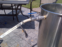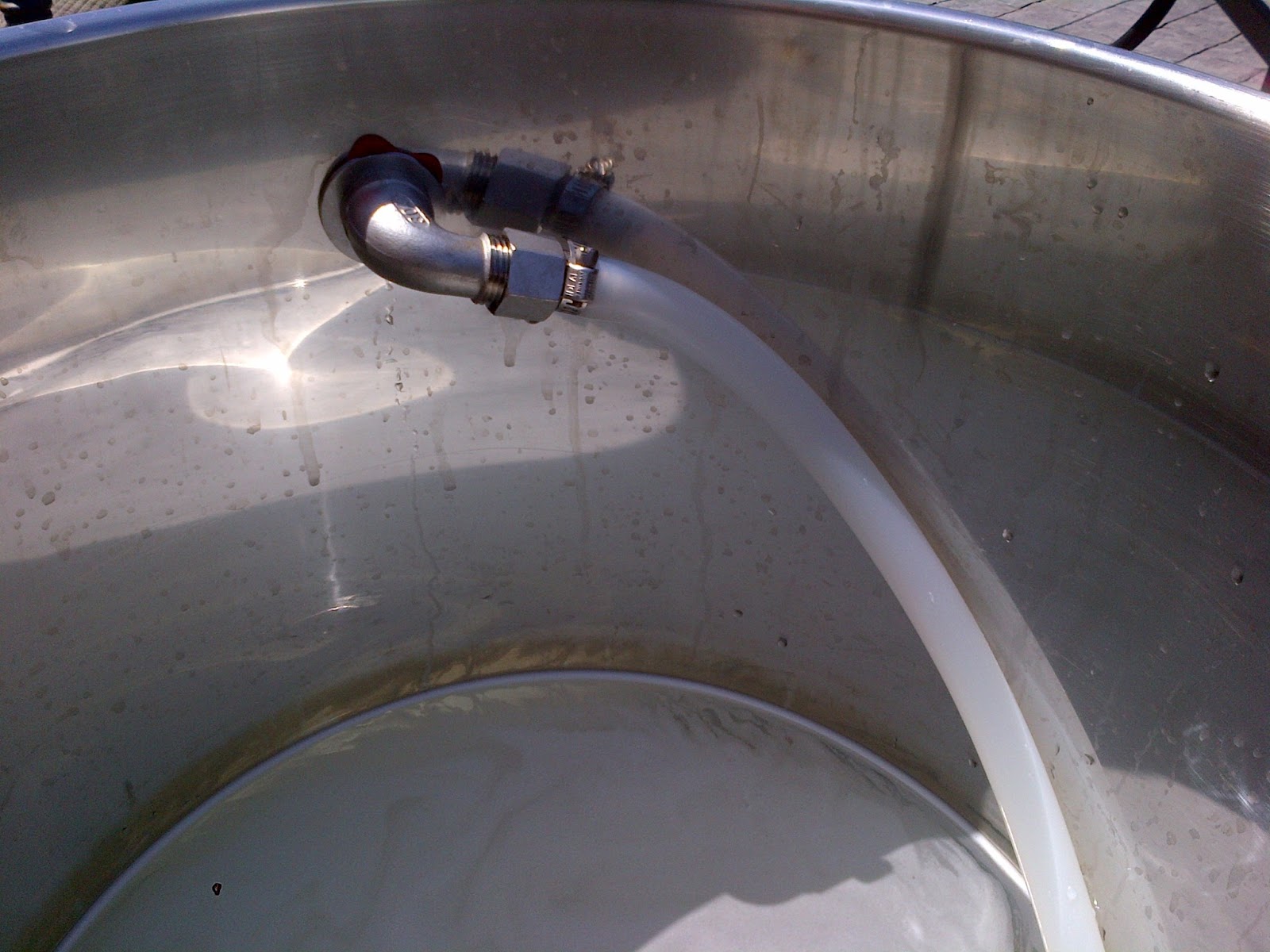 | View of inlet from inside kettle. 5′ of silicone tubing coils around to the bottom of the kettle to help with whirlpooling. |