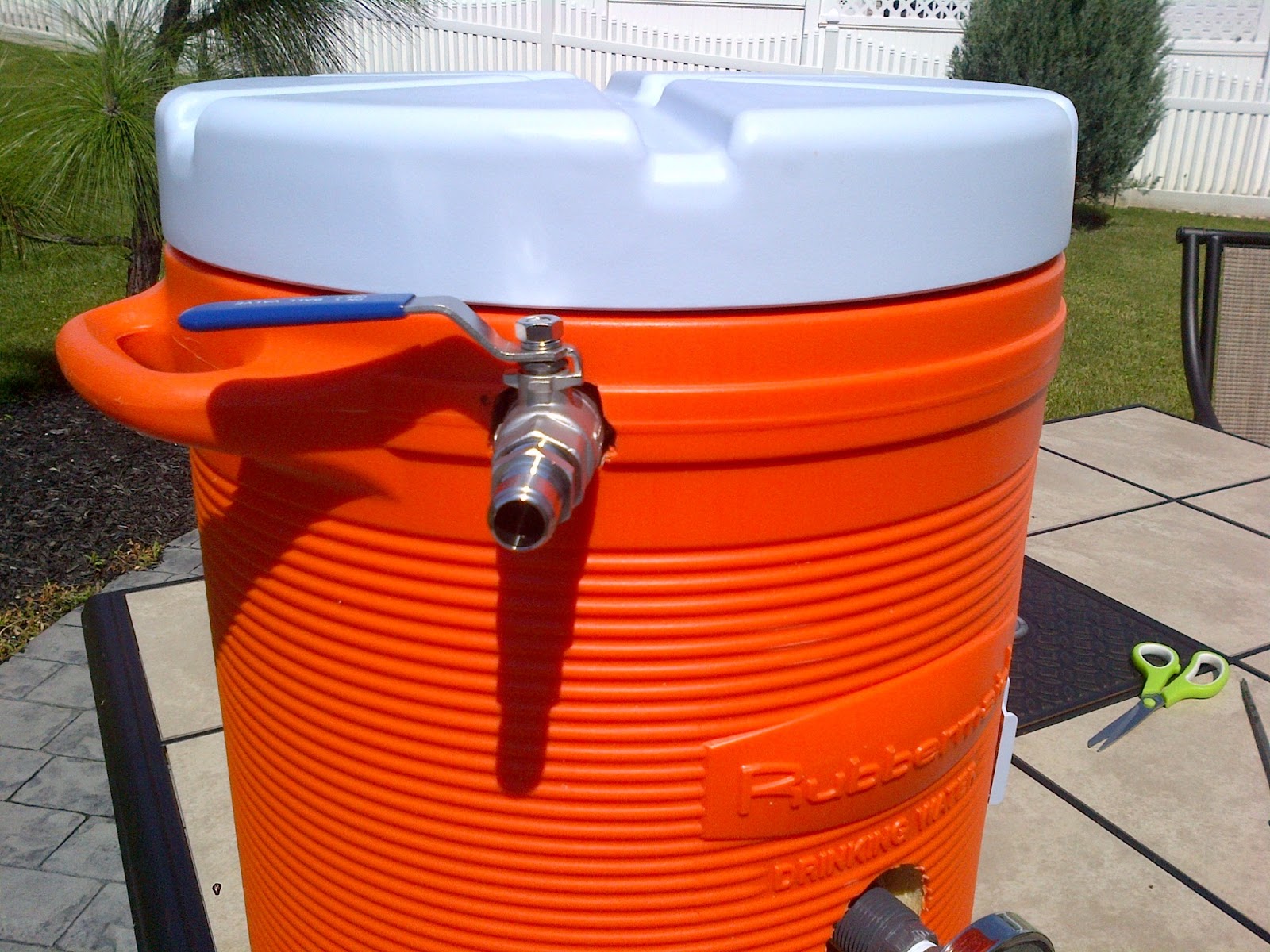 Well, unfortunately, I failed to take pictures when I punched holes and installed the inlet valves in my mash tun and boil kettle. Guess I got excited and jumped right in. It was a bit stressful, but I feel a LOT better now that it’s finished and everything turned out well.