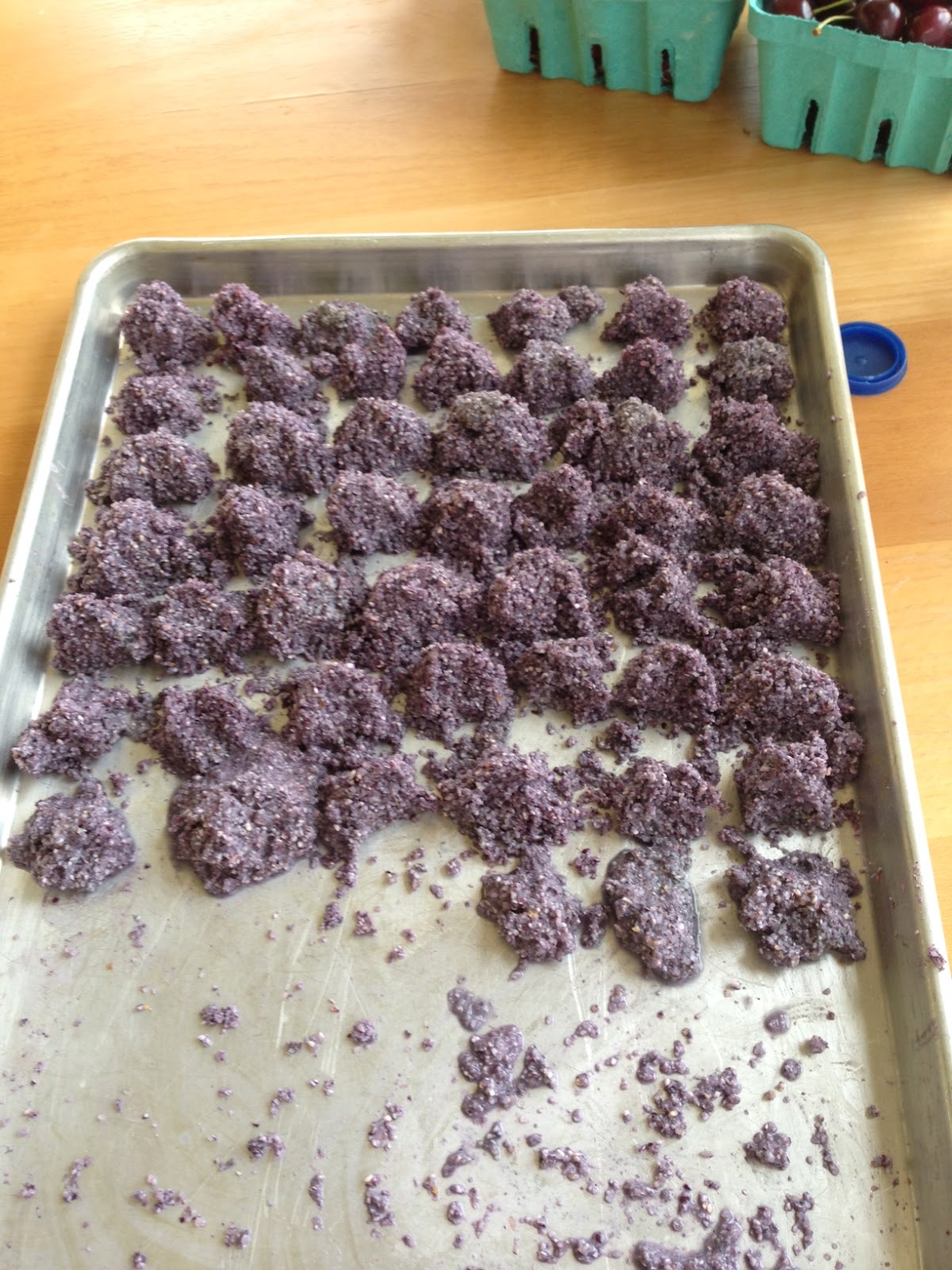 | Muko, the tiny balls of saliva soaked blue corn meal. Now they air dry overnight before being boiled with the rest of the ingredients. |